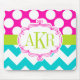 This adorable mousepad features turquoise chevron, hot pink polka dots and scroll frame. Personalise it with your name or monogram! Click the orange CUSTOMIZE IT button to change font, size and colour.