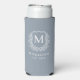 Monogram Dusty Blue Crest Botanical Wedding Seltzer Can Cooler