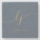 Monogram Dusty Navy Blue Gold Simple Elegant Feminine Stone Coaster