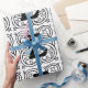 Monogram E Initial Black and White Scroll Pattern Wrapping Paper