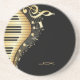 Monogram Elegant Black And Gold Music Notes Design Coaster