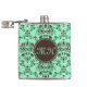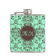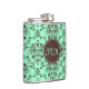 Monogram Elegant Chocolate Brown Damask Mint Green Hip Flask