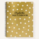An elegant gold artist sketchbook with white polka dots. So fun for a creative visual artist. Personalise it with your name on the front and back of sketchbook. Designed for you by Blackberry Boulevard.