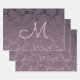 Monogrammed initial lavender mauve purple girly pattern design. Elegant, modern craft decoupage wrapping paper sheets set of three. Classy, beautiful, floral succulent metallic design. Change letter and name. Image copyright Marg Seregelyi Photography.