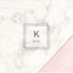 Trendy elegant design, white gold marble, black minimalist custom monogram, rose gold colour block. Modern, simple, and elegant.