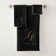 Monogram Elegant Minimal Black Gold Chic Bath Towel Set