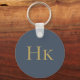 Monogram Elegant Classic Navy Blue Gold Monogrammed Initials Keychain