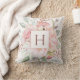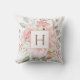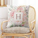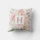Monogram Elegant Pink Rose Peony Floral Bouquet Cushion