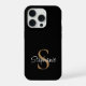 Monogram Elegant Script Name Black Gold iPhone Case