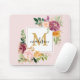 Monogram Elegant Watercolor Rose Floral Botanical Mouse Pad