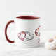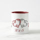 It shows two interlinked hearts, one in red and one in silver. Change the monogram to their initials.