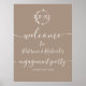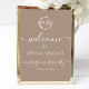 A simple chic foliage faux foil monogram grullo engagement party welcome sign foam board. Easy to personalise with your details. Modern boho engagement party welcome sign foam board editable, wreaths photo wedding invitation, customisable, calligraphy handwritten font, simple, elegant.
