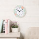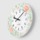 Monogram Eucalyptus Leaves Peony Floral Peach Sage Large Clock