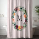 Monogram Fall Autumn Rose Flower Floral Wreath Shower Curtain
