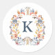 Monogram Fall Colour Yellow, Orange Red Blue Flora Classic Round Sticker