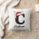 Monogram Family Christmas Antlers Santa Hat Throw Pillow | Rustic Initial Personalised Holiday Cushion