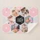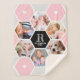 Make your own personalised family photo blanket! This design displays a geometric 6 photo collage, pink and grey hexagon pattern, centre monogram and family name in white font to personalise with your own details. It would make a lovely anniversary gift.