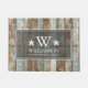 Monogram Family Name Rustic Boho Wood Beach House Doormat