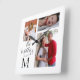 On this stylish square wall clock is a monogram letter in the corner then 3 photos with the text on the side with family name and date where you can customise to your liking with your own photos and family name.