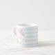Monogram Fancy Pink Roses Blueberry Espresso Mug. Fancy floral monogram with roses and blueberry. Very ornate and cheerful, with slightly Victorian or shabby chic look and feel. Pastel colours: pink, blue, green. Light blue stripes. Pink and golden monogram (golden is not real gold but colour).