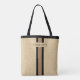 This rustic tote bag design features faux burlap texture with a bold stripe in the centre. It also has a place for an elegant monogram at the top for personalisation. You can easily customise the font style and the font colour of this tote bag by clicking on the "Edit Design" option. This tote is sturdy, well-made and has plenty of room to hold everything whether you’re out and about or on a weekend gateway.