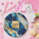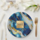 Monogram Faux Gold, Blue and White Marbled Wedding Paper Plate