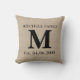 Custom add your own monogram, initial, family name and wedding anniversary or birthday date faux jute linen burlap rustic chic shabby country chic throw pillow.