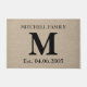 Custom add your own monogram, initial, family name and wedding anniversary or birthday date faux jute linen burlap rustic chic shabby country chic large doormat.