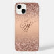 Monogram Faux Rose Gold Glitter iPhone 14 Case