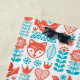 This folk art design features a teal and coral bird and fox pattern.