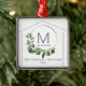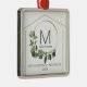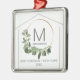 Monogram type and family name plus year. Personalized first christmas in our new home holiday ornament. Modern half wreath illustration with