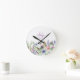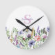Monogram floral botanical name round clock. Easy to change the text. Pretty watercolor wildflower design.