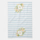 Monogram Floral Chic Pastel Blue Stripes Tea Towel