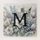 Monogram floral drawing pink tulips daffodils jigsaw puzzle