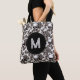 Monogram Floral Skull Black White Halloween Tote Bag
