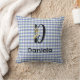 Monogram flower retro gingham blue green cushion