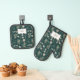 Monogram Flowers and Fern Leaves Floral Botanical Oven Mitt & Pot Holder Set