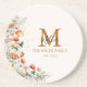 Introducing our Monogram Forest Mushrooms Flowers Floral botanical coaster. Featuring watercolor illustration of mushroom, strawberry, flowers on near white background. And editable text that can be personalised to add unique touch. Suitable as housewarming or wedding gifts.