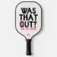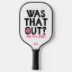 Monogram Funny Typography Pickleball Player Pickleball Paddle features the text "Was that out? Are you sure?" in modern script typography with your personalised name below. Perfect gift for clubs, Christmas, birthday, Mother's Day, Father's Day, best friends, sister and more. Designed by ©Evco Studio www.zazzle.com/store/evcostudio