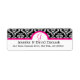 Damask White with Black background lined with a hot pink border. Hot Pink Monogram on white background. Wedded couples name in black on a white background with black return mailing address text. This makes a perfect coordinated label to any damask wedding RSVP or invitation. Place these return address labels on the back of your wedding invitation envelopes or on the front left side of any envelope. Save yourself from hand writing your return address on all out going mail.