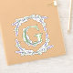 A romantic and elegant design with monogrammed letter framed by eucalyptus and lavender painted in watercolor.