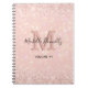 A girly chic notebook featuring a sparkly effect pink background, a pink glitter waterfall overlay, your initial, name, and extra text that reads 'volume #1', this can also be changed.