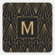 Monogram Gold and Black Art Deco Pattern Square Sticker
