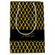 Monogram gold and black quatrefoil pattern medium gift bag