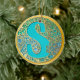 Monogram Gold and Turquoise S and Colourful Flower Ceramic Ornament