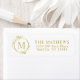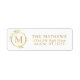 Here's an elegant return address label for your holiday mailings. A lovely, modern design of a faux gold Christmas wreath encircling your monogram initial together with your return address on a white background. Check out my store for complimentary and coordinating products. If you have a design question or would like to see this design on another product, please feel free to contact me at jschmidtdesignworks@gmail.com. Design © Judith Schmidt.