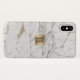 Monogram Gold Label Trendy White Gold Marble Case-Mate iPhone Case