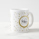 Monogram Gold Leaf Print Silver Confetti Large Coffee Mug