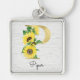 Monogram Gold Sunflower Girly Floral Initial P Key Ring