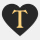 Monogram gold T on black background Heart Sticker